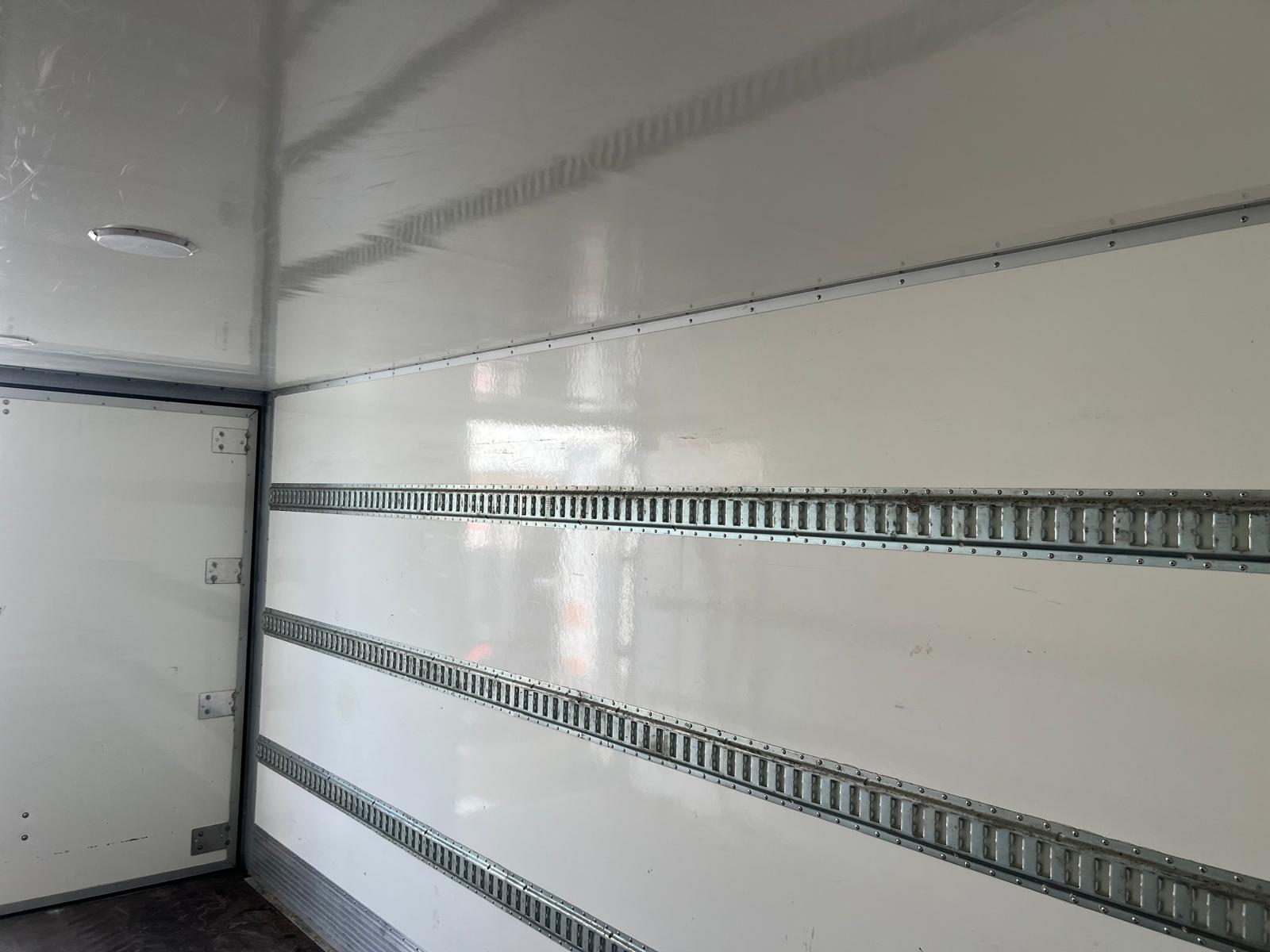 tilhørende 2 stk. glasfiber veksellads kasse 30m3 - Indvendige ladmål L 5350 x H 2300 (lysmål 2250 mm) x B 2440 mm - bagdøre - 3 binde rækker - finer ladbund - LED lys i taget - læsse højde 1020 mm - container låse højde 880 mm