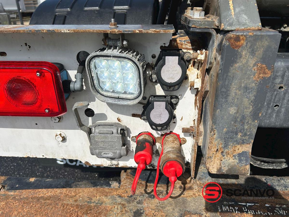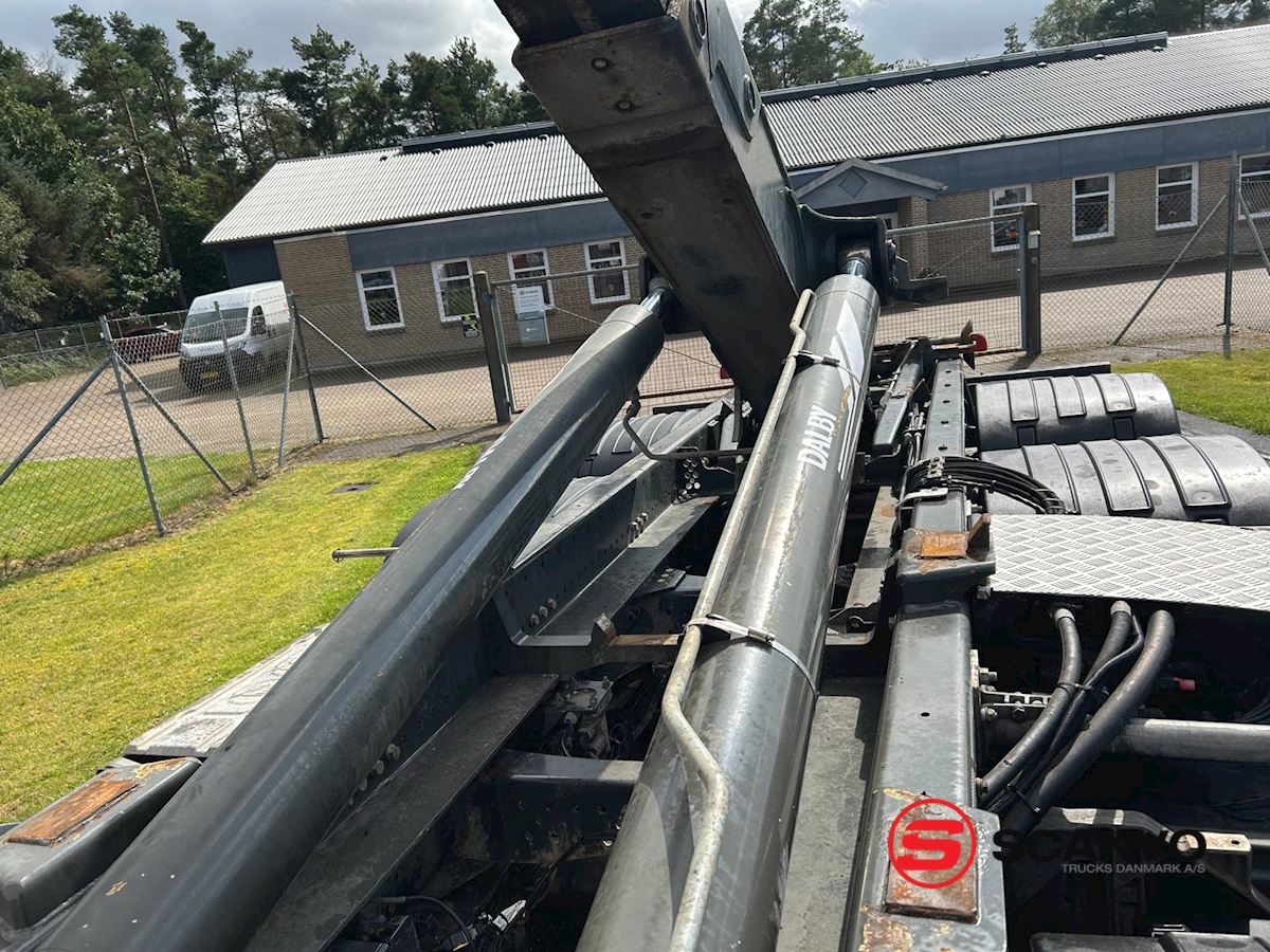 DALBY kroghejs 20 ton med knækarm - 5300 mm fra centrum krog til centrum ruller ibag + 300 mm til bagkant kofanger - kan køre med max 6300 mm container kan øges ved brug af udskuds kofanger med ca. 600 mm - tværgående værktøjskasse bag førerhus