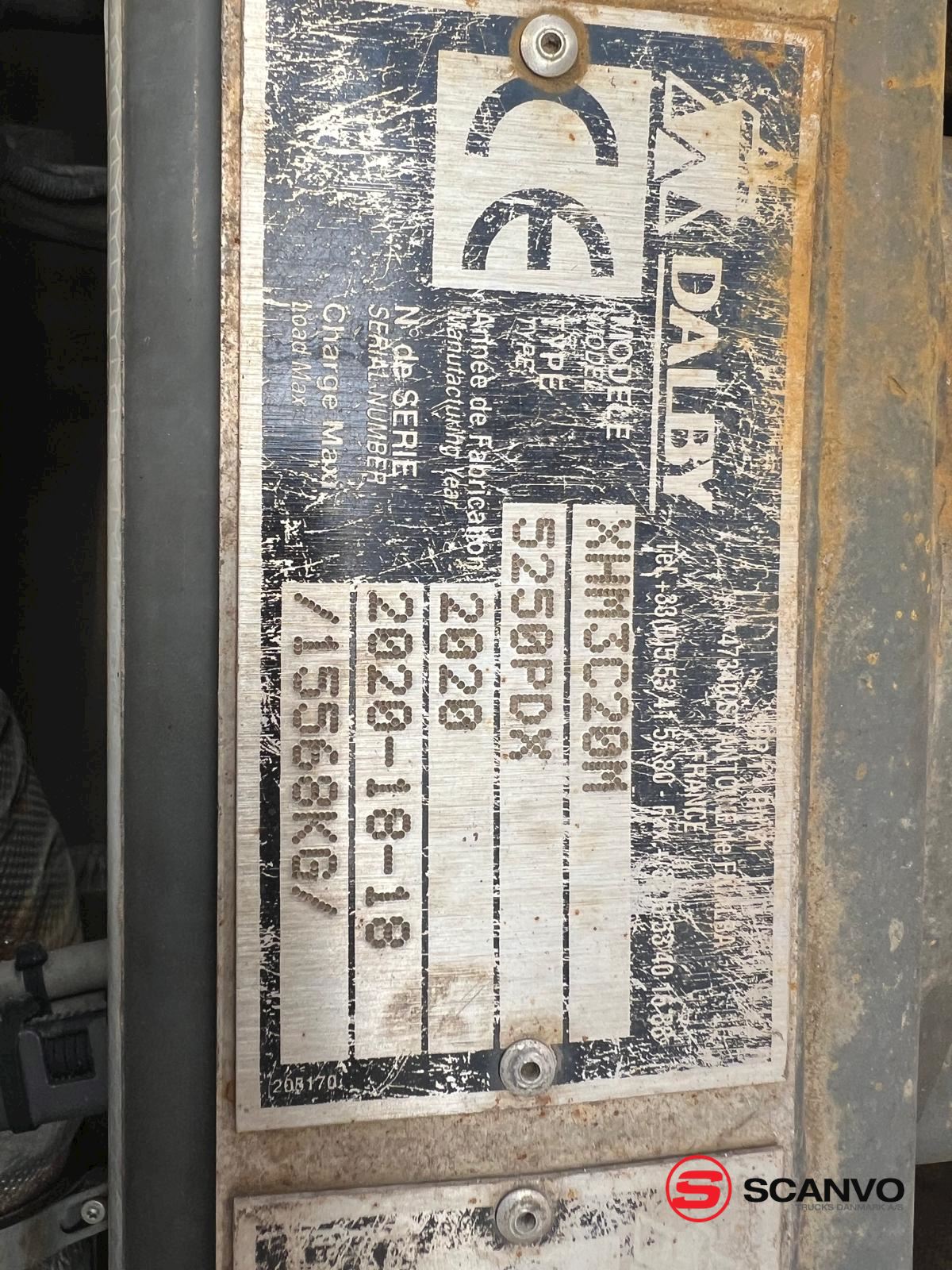 DALBY kroghejs 20 ton med knækarm - 5300 mm fra centrum krog til centrum ruller ibag + 300 mm til bagkant kofanger - kan køre med max 6300 mm container kan øges ved brug af udskuds kofanger med ca. 600 mm - tværgående værktøjskasse bag førerhus