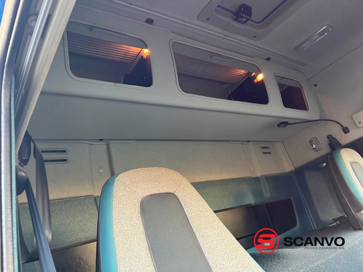 Globetrotter førerhus med lav indstigning - 1 køje - klimaanlæg - motor/kabinevarmer - walkie - køleskab under køje - skabe på bagvæg - bak alarm - RAL 5017 Blue førerhus lakering mv.