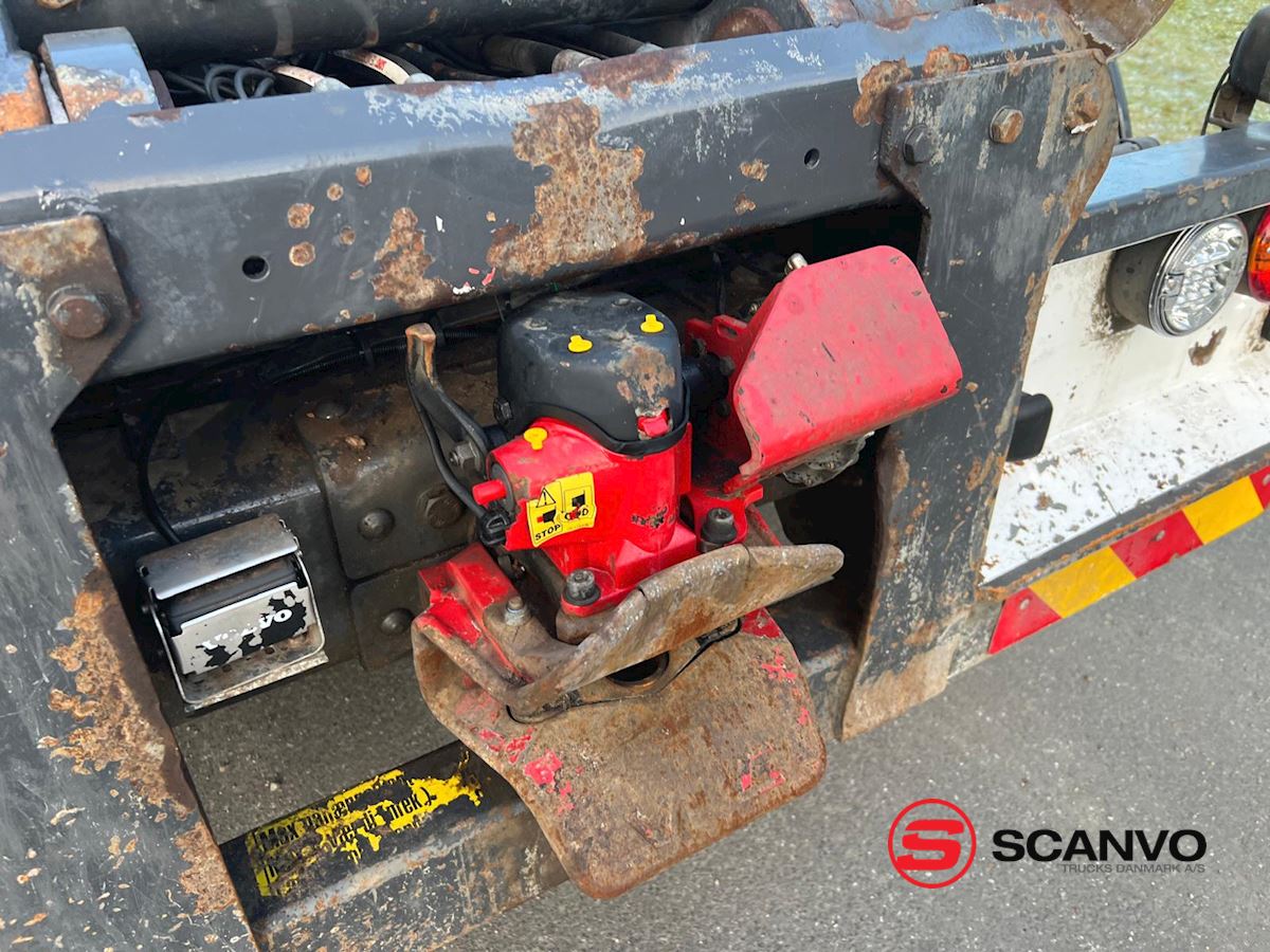 Containerlængde max 6500 mm UDEN brug af udtrækskofanger. - højde på op til container ruller 1250 mm - mulighed for at øge længden med udhæng + 800 mm ved brug af udskuds kofanger således den kan køre med ca. 7200 mm containere - værktøjskasse.